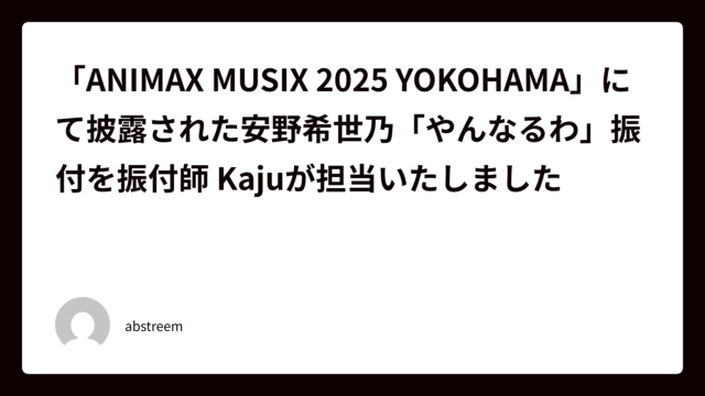 「ANIMAX MUSIX 2025 YOKOHAMA」にて披露された安野希世乃「やんなるわ」振付を振付師 Kajuが担当いたしました